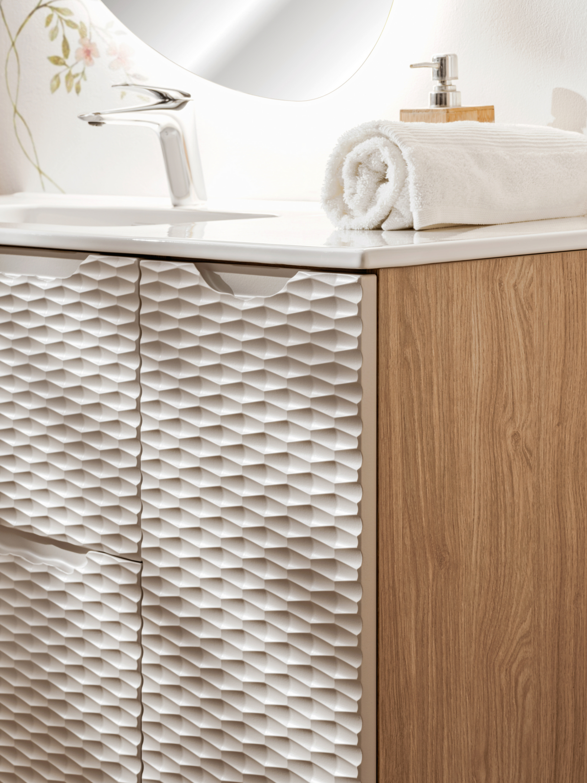 Cufundați-vă în amestecul unic de natură și design modern cu colecția noastră de mobilier OCEAN BEIGE. Inspirația din spatele creării acestor piese excepționale a fost trasă din fascinația pentru ocean - un loc unde puterea simplității întâlnește imprevizibilitatea forțelor naturii. O caracteristică distinctivă a mobilierului OCEAN sunt fronturile împodobite cu valuri delicate, orizontale, care capătă o formă tridimensională, amintind de transformarea constantă a peisajului oceanic. Corpurile, realizate din stejar uleiat, conferă mobilierului o structură naturală și durabilă. Disponibilitatea fronturilor în culoarea bej permite personalizarea pentru diverse interioare, creând o atmosferă distinctă. O caracteristică atent gândită a colecției OCEAN este utilizarea mânerelor încastrate în locul soluțiilor tradiționale. Acest lucru nu numai că conferă mobilierului un caracter modern, dar introduce și o uniformitate în design. Această combinație unică de funcționalitate, estetică și inspirație inspirată din natură face din colecția OCEAN o alegere ideală pentru cei care doresc să-și trezească simțurile și să-și creeze propriul ocean de liniște cu colecția OCEAN.
