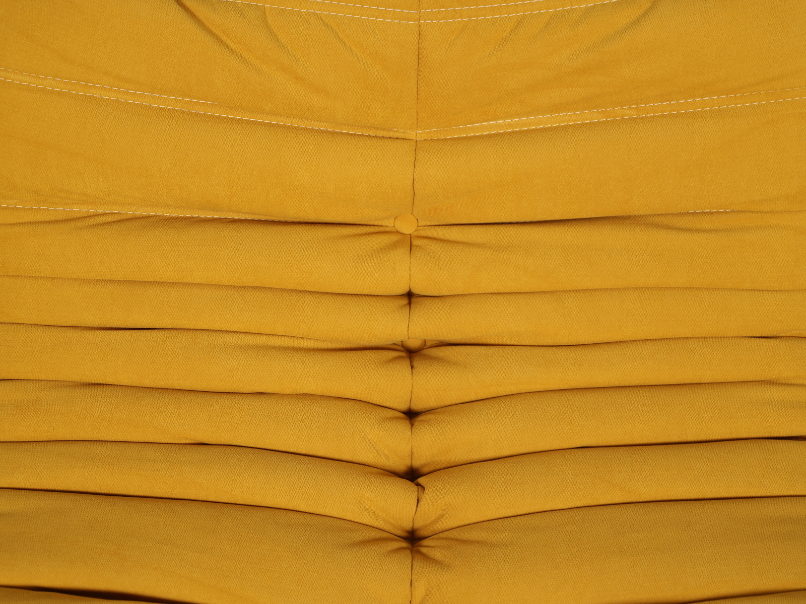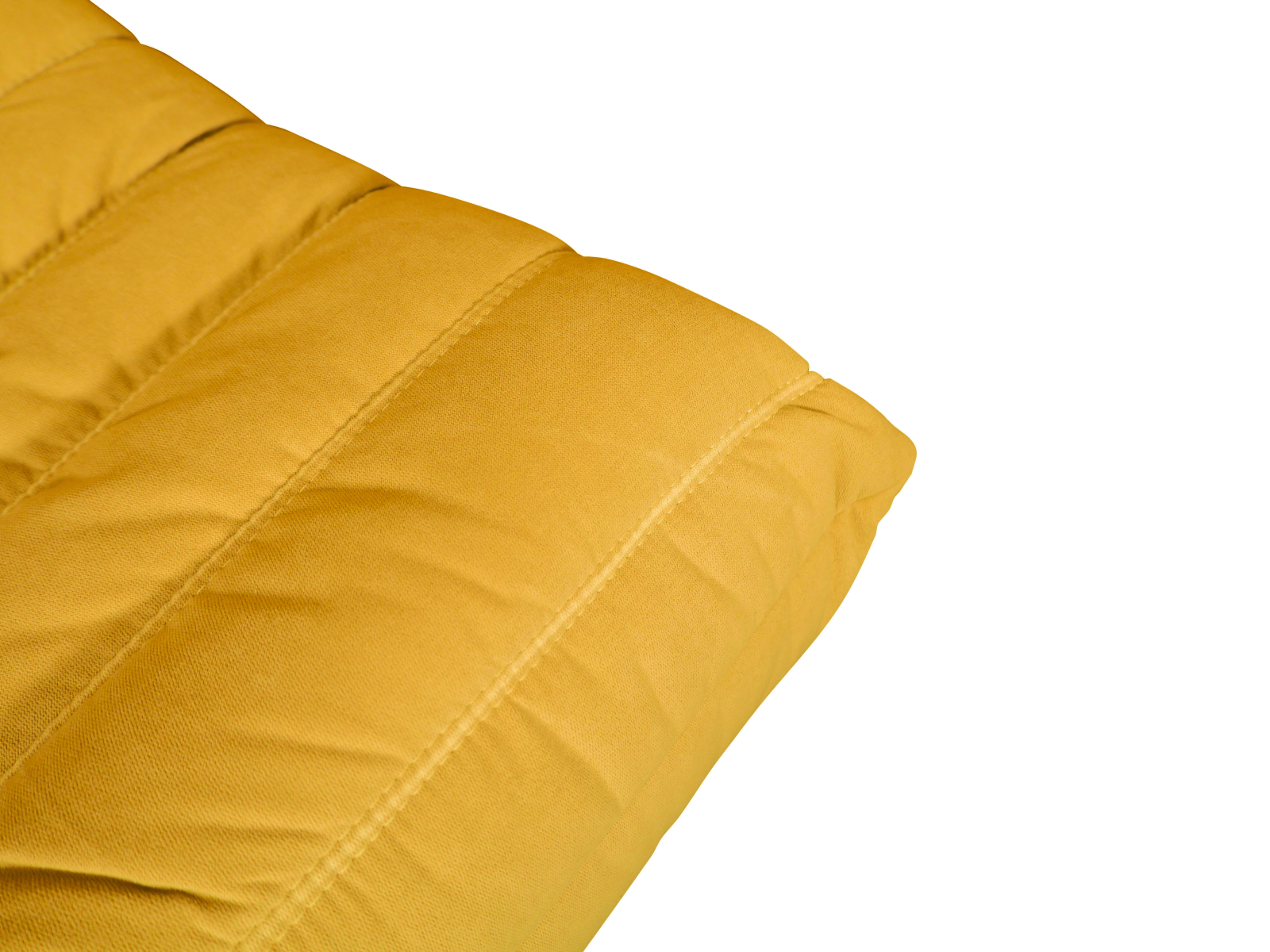 Acest fotoliu modern și emblematic are o formă simplă și detalii cu cusături orizontale, cu o linie centrală verticală matlasată. Culoarea sa originală, vibrantă, muștar, va fi completarea perfectă a camerei dvs. de zi. Vine cu un taburet.